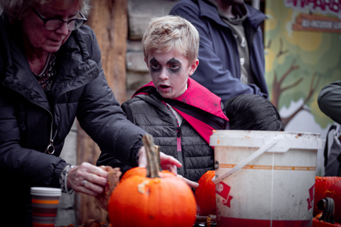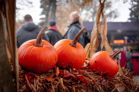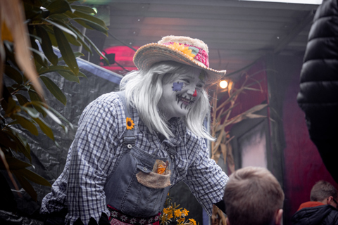 Het gehele park is in Halloweensfeer, overal vind je strobalen, maisstengels, pompoenen en andere Halloweendecoraties.